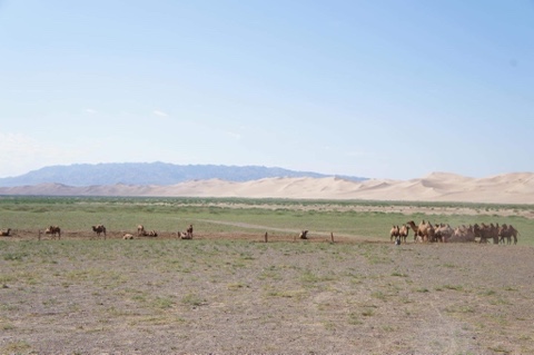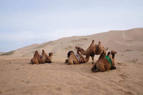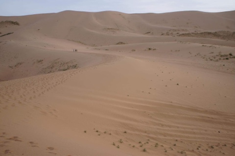 ウムヌゴビ県にあるホンゴル砂丘と呼ばれる長さは 180 キロも 続ける無植物の砂 丘です。 砂丘の北側 「ホンゴリーン川」が流 れてあり、その周辺にはゴビ砂漠なのに林、柳、草、花が生え る草原樹林地帯のような素敵な場所があります。この砂丘では、音楽がながれているように聞こえるが、これは風に飛ばされた砂粒が摩擦し合って静電気が発生しているからです。