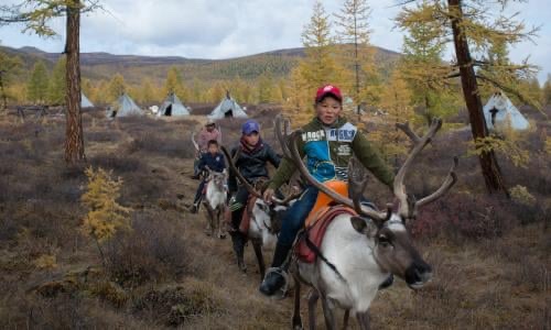 独自の文化・言語習慣をもつ一族はモンゴル最北端の テンギス、シャルガ、シシゲドなどの河の流域、 ジャムス、 オラーンタイガなどの山中で暮らしている。 夏は 27 度、 冬 はマイナス 55~60 度に達する極寒のタイガの奥深くで 白いトナカイを放牧している。 春営地から秋営地まで 50 ~70 キロを移動し、文明や発展から隔絶した土地で質 素に暮らしてきた。
