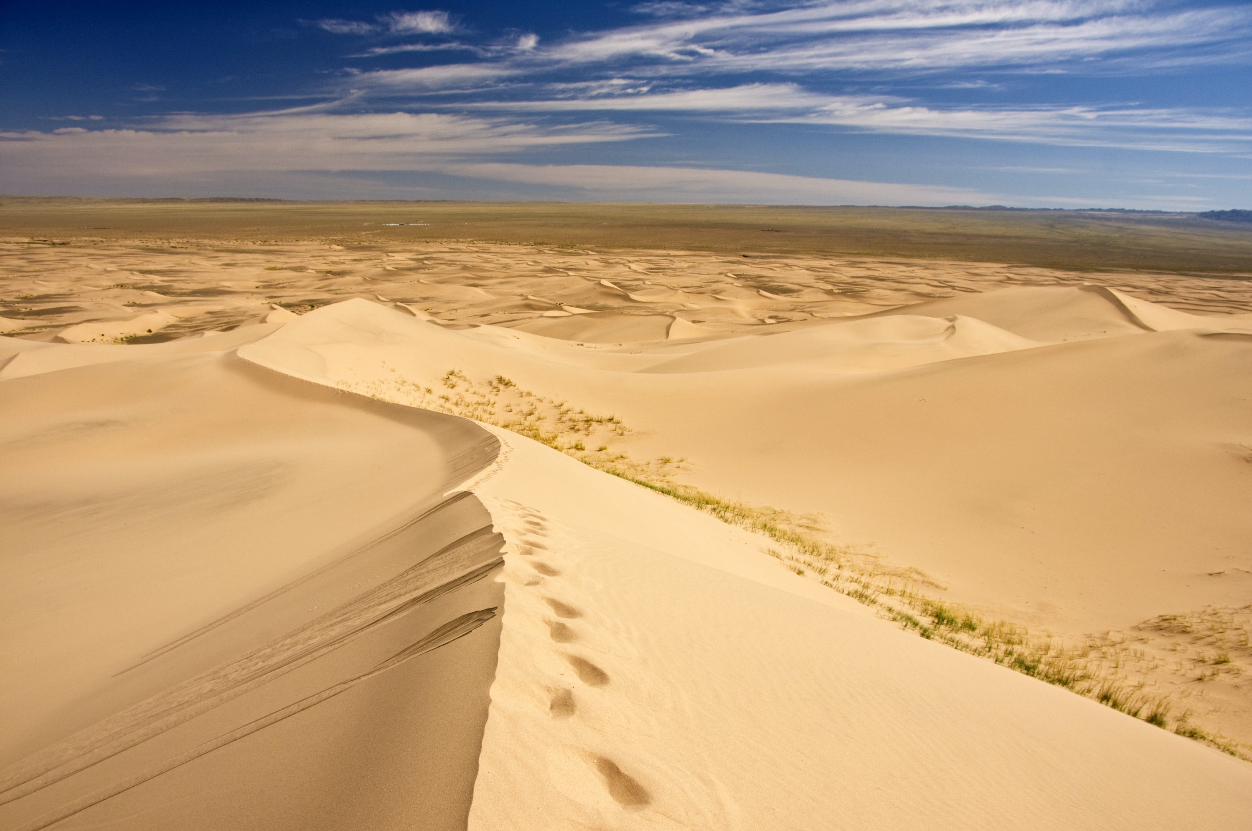 Embark on an adventure to the Khongoryn Els, the breathtaking sand dunes that stretch up to 180 km with heights reaching up to 300 m and widths of 15 km. Take on the challenge of climbing the sand dunes for a once-in-a-lifetime experience as you witness the stunning sunset from the top. Indulge in the traditional Mongolian way of exploring the sand dunes by riding a Bactrian camel, famously known as the "Dinosaur of Gobi". After a day filled with excitement and adventure, retreat to a cozy ger camp for a comfortable overnight stay. (B/L/D)